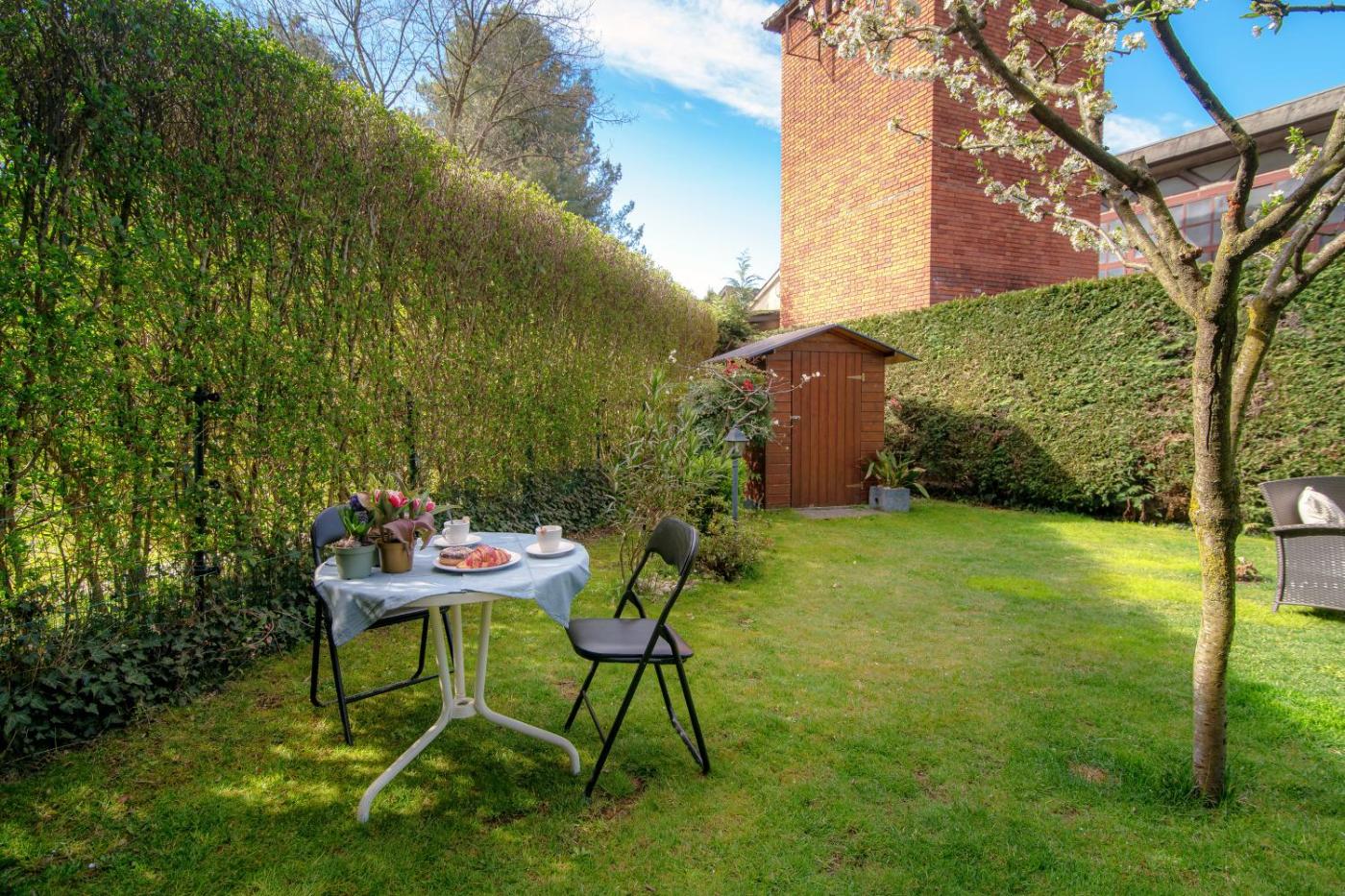 Apartment with Garden View. This spacious apartment features 1 living room, 1 separate bedroom and 1 bathroom with a bidet and free toiletries. Meals can be prepared in the well-fitted kitchen, which has a stovetop, a refrigerator, a dishwasher and kitchenware. The apartment has parquet floors, a seating area with a flat-screen TV, a private entrance, a coffee machine as well as garden views. The unit has 2 beds.