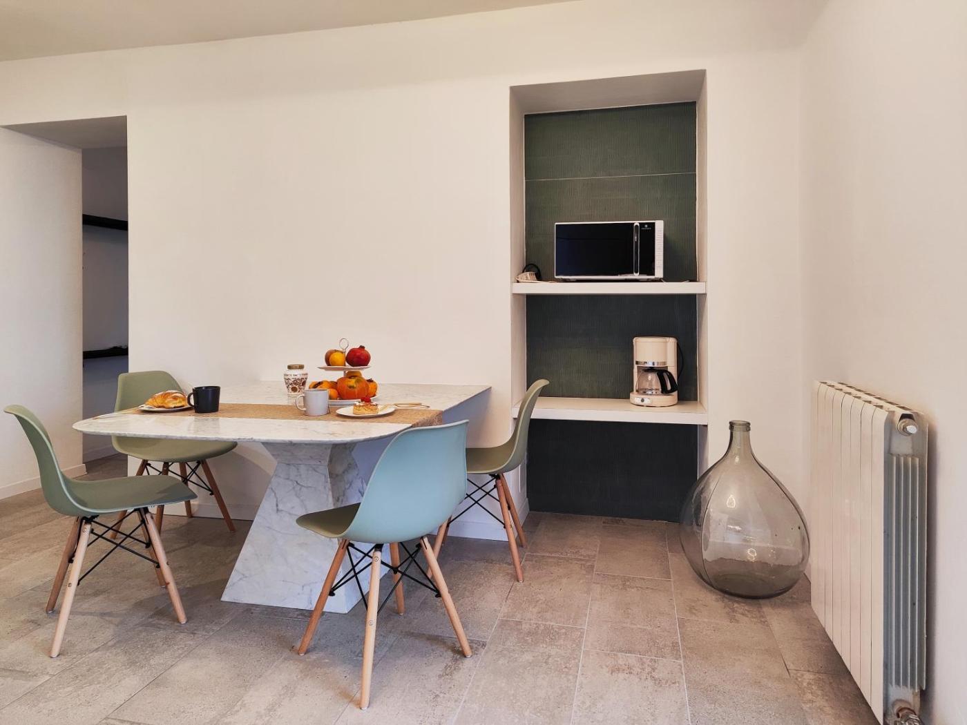 One-Bedroom Apartment. Featuring a private entrance, this air-conditioned apartment comprises 1 living room, 1 separate bedroom and 1 bathroom with a walk-in shower and a bidet. The well-fitted kitchen features a stovetop, a refrigerator, kitchenware and a microwave. The spacious apartment provides a tea and coffee maker, a seating area, a dining area, a flat-screen TV with streaming services, as well as lake views. The unit offers 2 beds.