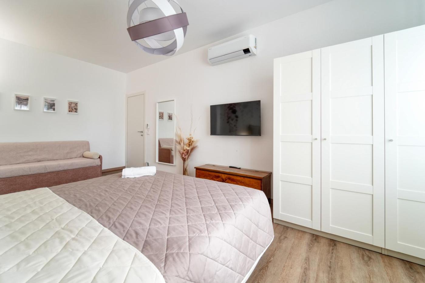 One-Bedroom Apartment with Balcony. Featuring a private entrance, this air-conditioned apartment comprises 1 living room, 1 separate bedroom and 1 bathroom with a shower and a bidet. Meals can be prepared in the kitchen, which comes with a stovetop, a refrigerator, a dishwasher and kitchenware. The spacious apartment provides a washing machine, a tea and coffee maker, a seating area, a flat-screen TV with streaming services, as well as mountain views. The unit offers 2 beds.