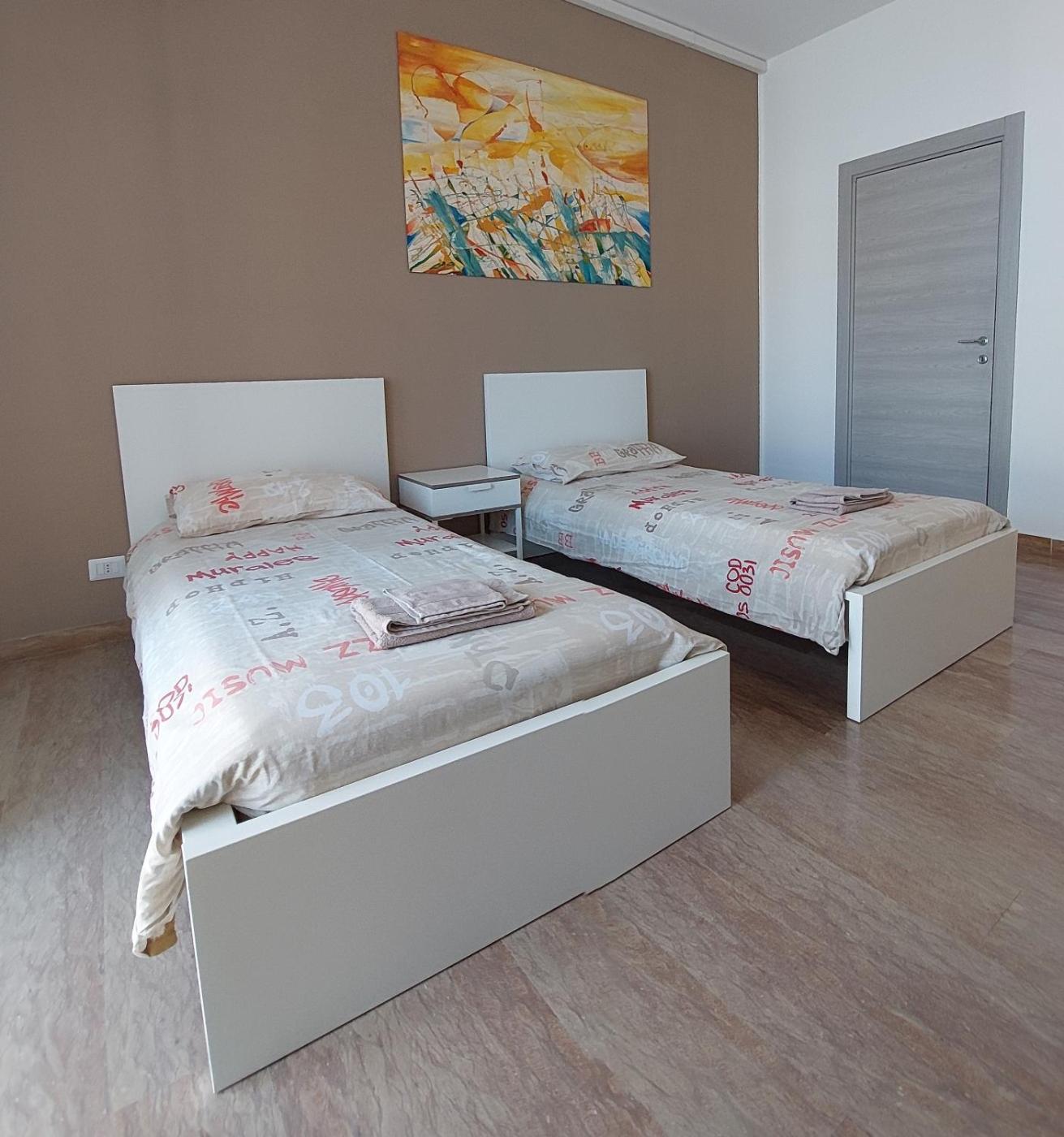 Twin Room. The twin room offers a washing machine, a dining area, as well as a shared bathroom boasting a shower and a bidet. In the fully equipped kitchen, guests will find a stovetop, a refrigerator, kitchenware and an oven. Rooms on the upper floors are reachable by lift. The unit has 2 beds. ;