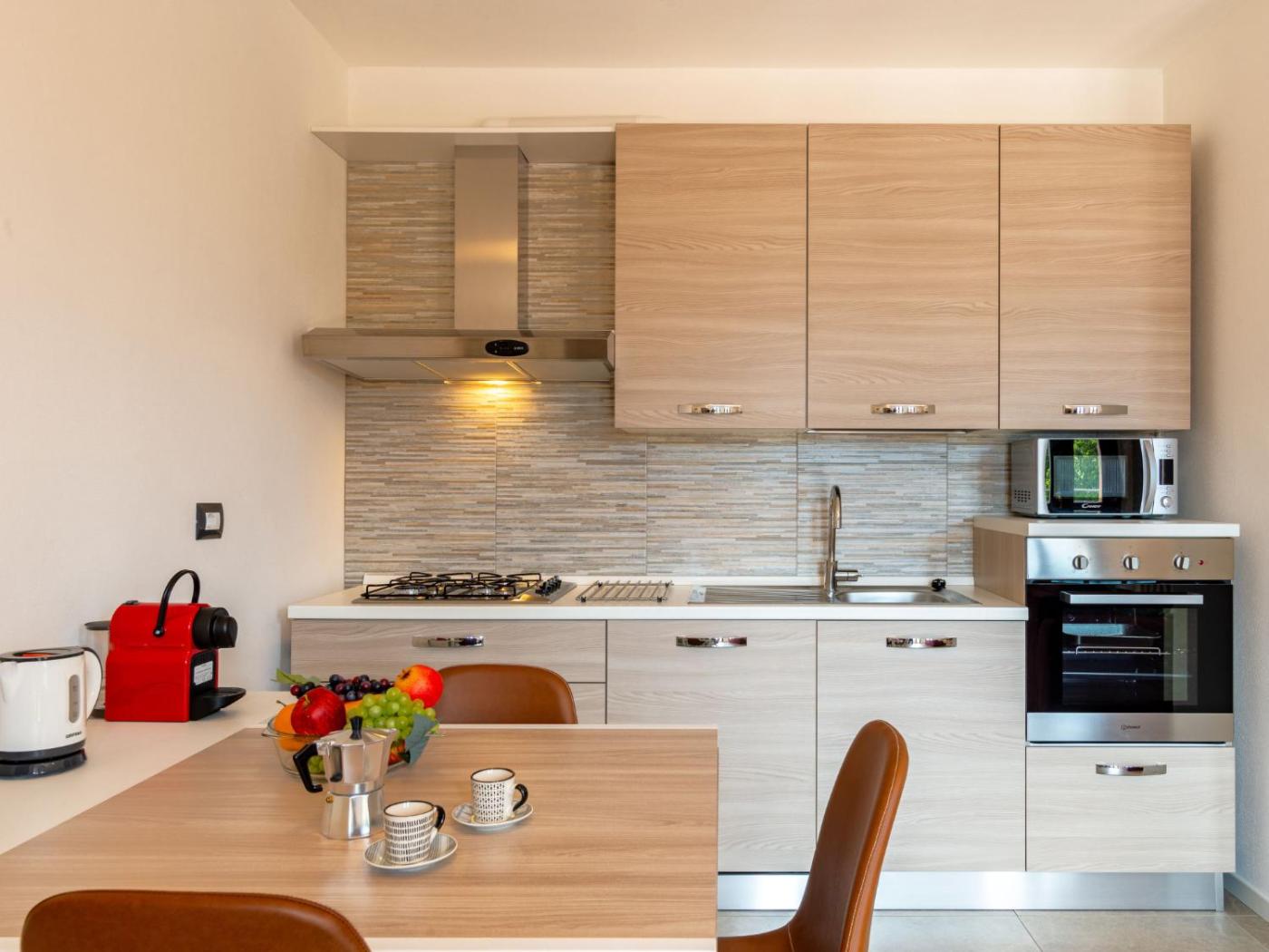Apartment. This spacious apartment features 1 living room, 1 separate bedroom and 1 bathroom with a shower and a bidet. In the fully equipped kitchen, guests will find a refrigerator, a dishwasher, kitchenware and an oven. The air-conditioned apartment features a TV, a washing machine, a coffee machine, heating as well as lake views. The unit has 2 beds.