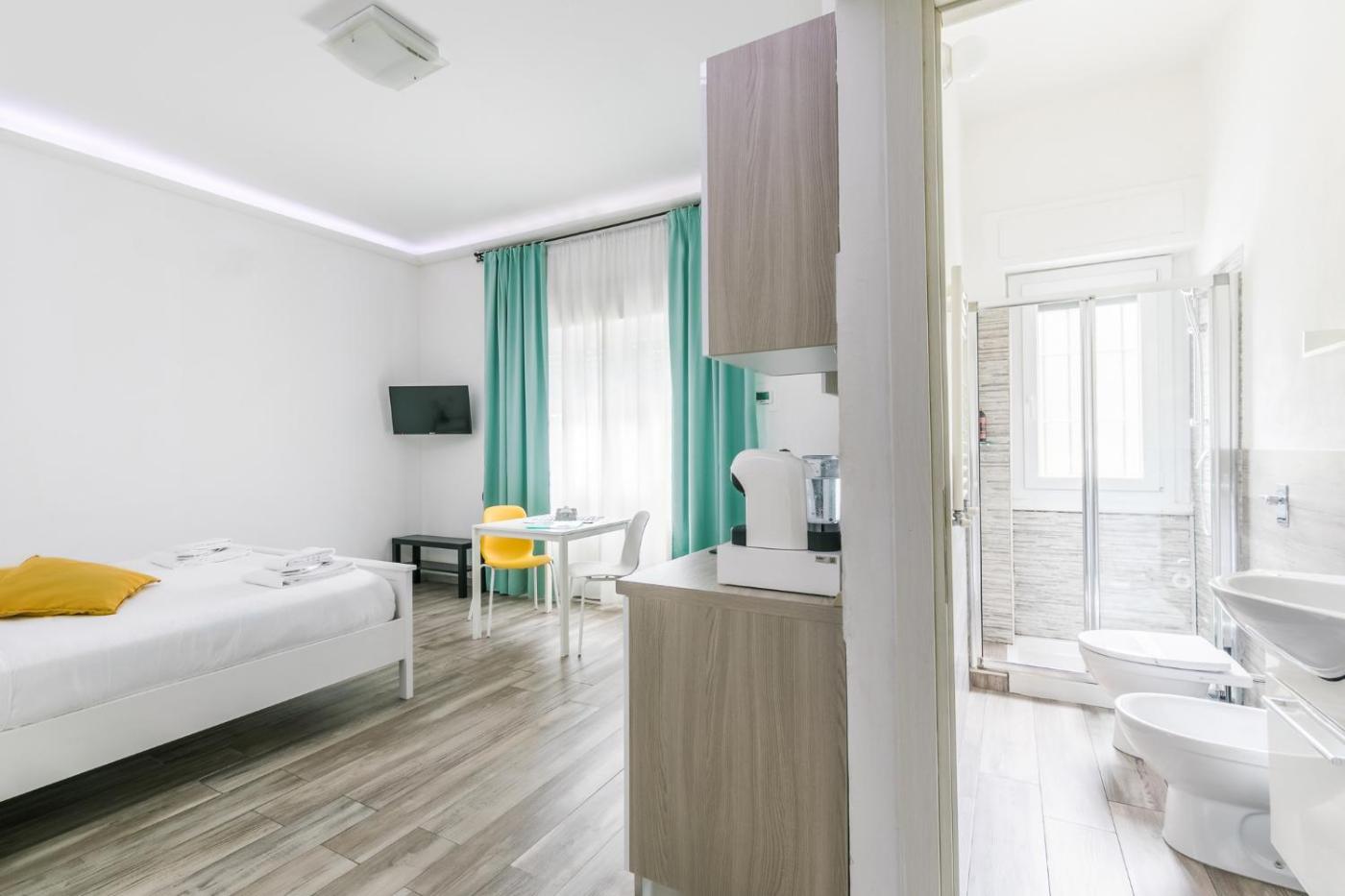 Studio Apartment. The air-conditioned apartment has 1 bedroom and 1 bathroom with a bath or a shower and a bidet. In the kitchen, guests will find a refrigerator, kitchenware, a microwave and a tea and coffee maker. The apartment features a wardrobe, a dressing room, heating, as well as a flat-screen TV. The unit has 1 bed.