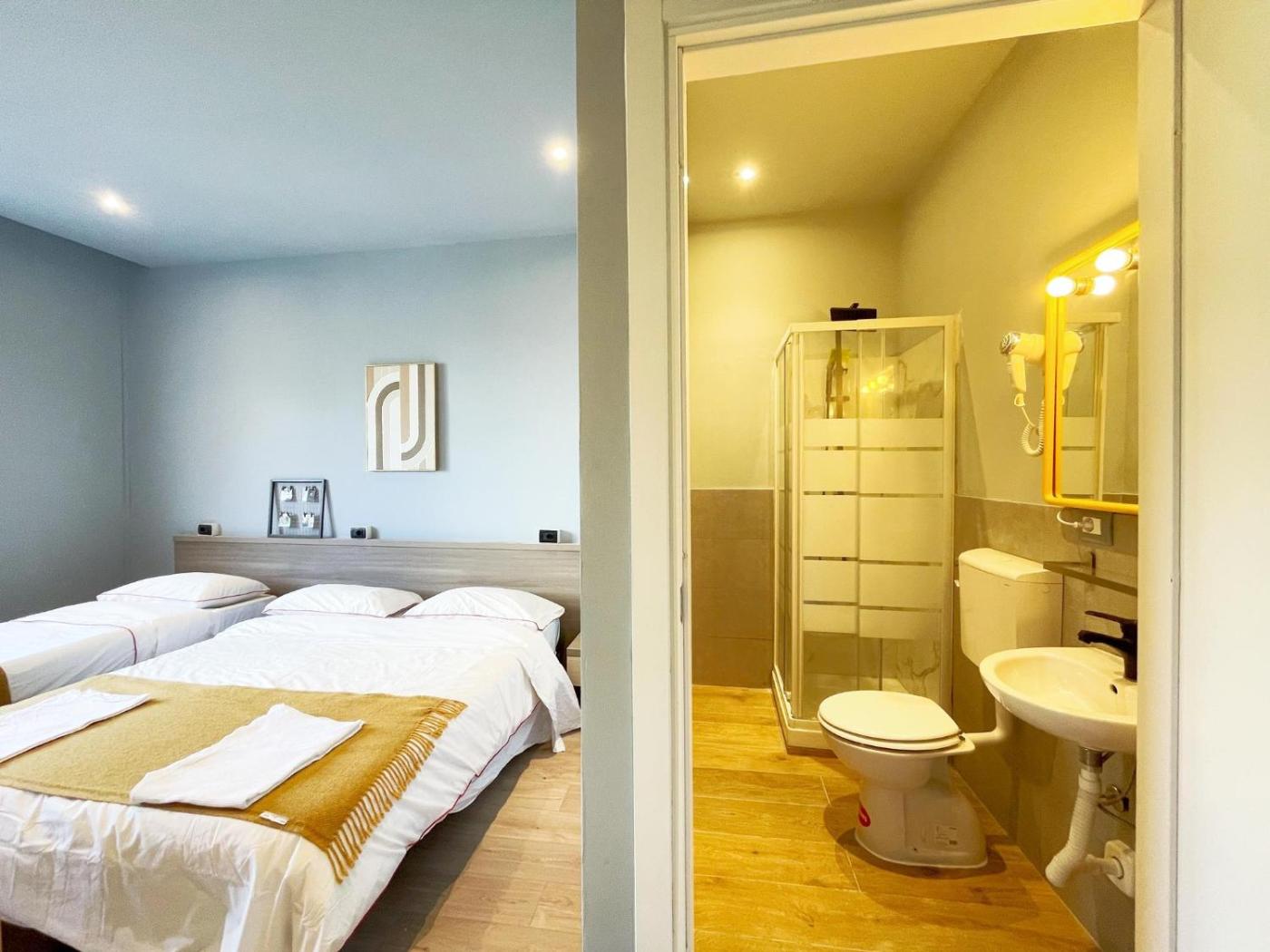 Economy Quadruple Room with Shared Bathroom. The quadruple room features air conditioning, a wardrobe, as well as a shared bathroom boasting a shower and a hairdryer. An electric kettle, tumble dryer and heating are available in this quadruple room. The unit has 4 beds. ;