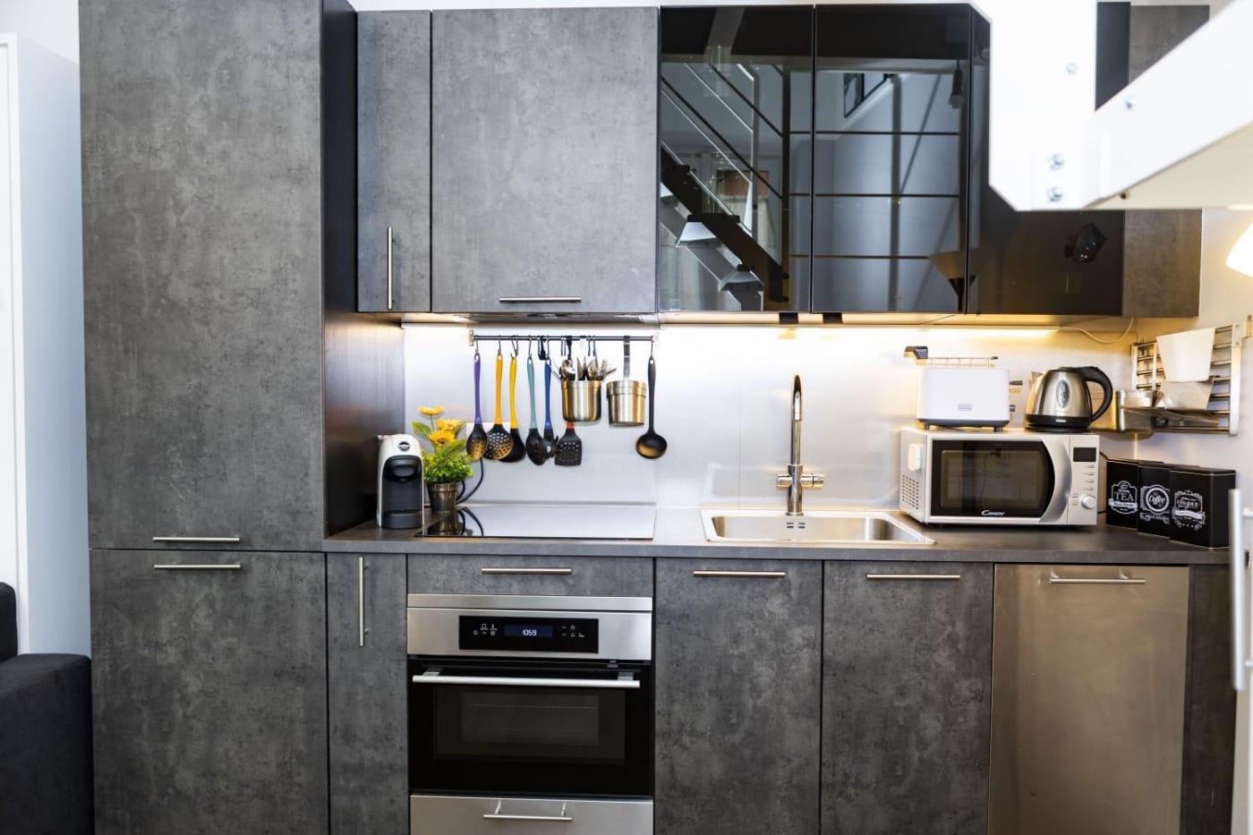 One-Bedroom Apartment. This spacious apartment comes with 1 living room, 1 separate bedroom and 1 bathroom with a shower and free toiletries. In the well-equipped kitchen, guests will find a stovetop, a dishwasher, kitchenware and an oven. This apartment is air-conditioned and has a seating area with a flat-screen TV, an electric kettle, a sofa and heating. The unit has 2 beds.