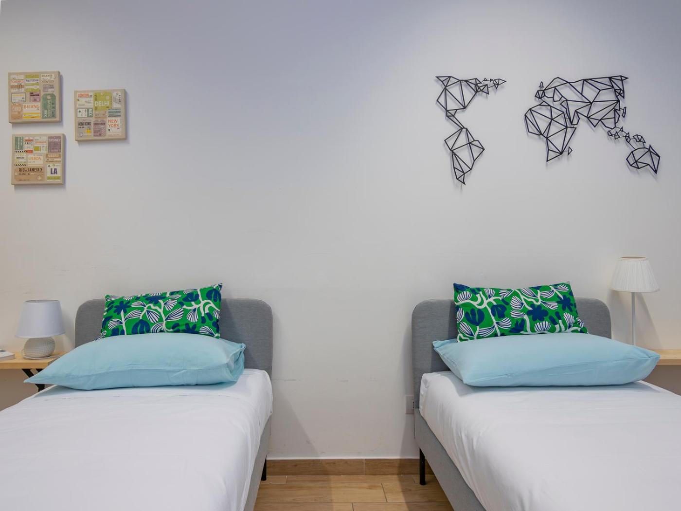 Two-Bedroom Apartment. Boasting a private entrance, this air-conditioned apartment features 1 living room, 2 separate bedrooms and 1 bathroom with a bath and a shower. The well-equipped kitchen has a stovetop, a refrigerator, kitchenware and a microwave. The spacious apartment features a washing machine, a tea and coffee maker, a seating area, a dining area and a flat-screen TV. The unit has 3 beds.