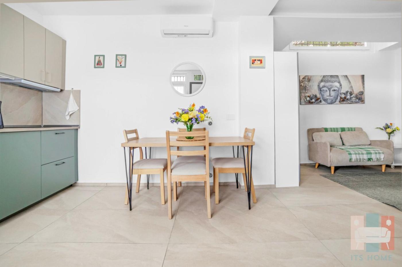 Room #1583049601. The fully equipped kitchen features a refrigerator, a dishwasher and kitchenware. The air-conditioned apartment offers a washing machine, a coffee machine and a seating area. The unit offers 2 beds.