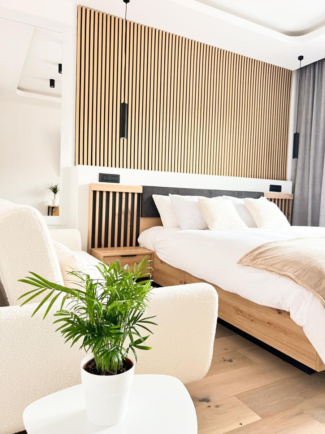 Studio Apartment with King Bed. The air-conditioned apartment has 1 bedroom and 1 bathroom with a bath and a shower. Boasting a terrace, this apartment also offers a washing machine, soundproof walls and a flat-screen TV with streaming services. The unit has 2 beds.