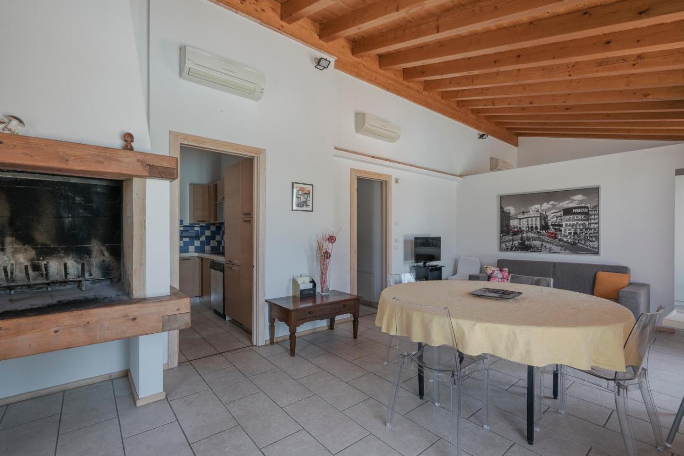 One-Bedroom Apartment. The private pool and fireplace are the special features of this apartment. This air-conditioned apartment comes with 1 living room, 1 separate bedroom and 1 bathroom with a hairdryer. The apartments kitchen is available for cooking and storing food. Boasting a terrace with garden views, this apartment also features a washing machine and a flat-screen TV. The unit has 2 beds.