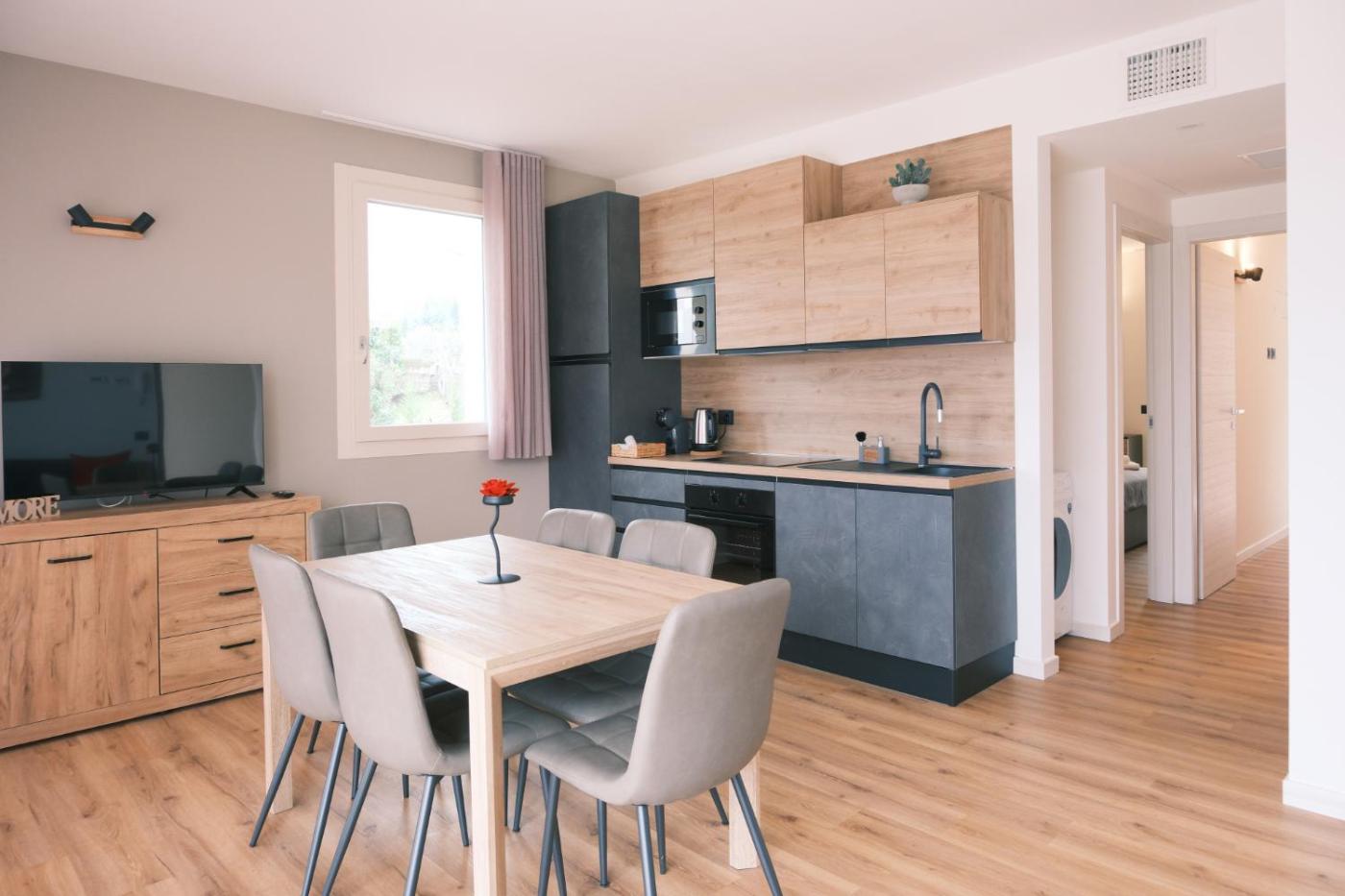 The spacious apartment with a terrace and lake views features 2 bedrooms, a living room, a flat-screen TV, an equipped kitchen with a dishwasher and an oven, and 1 bathroom with a bidet. The property offers garden views.