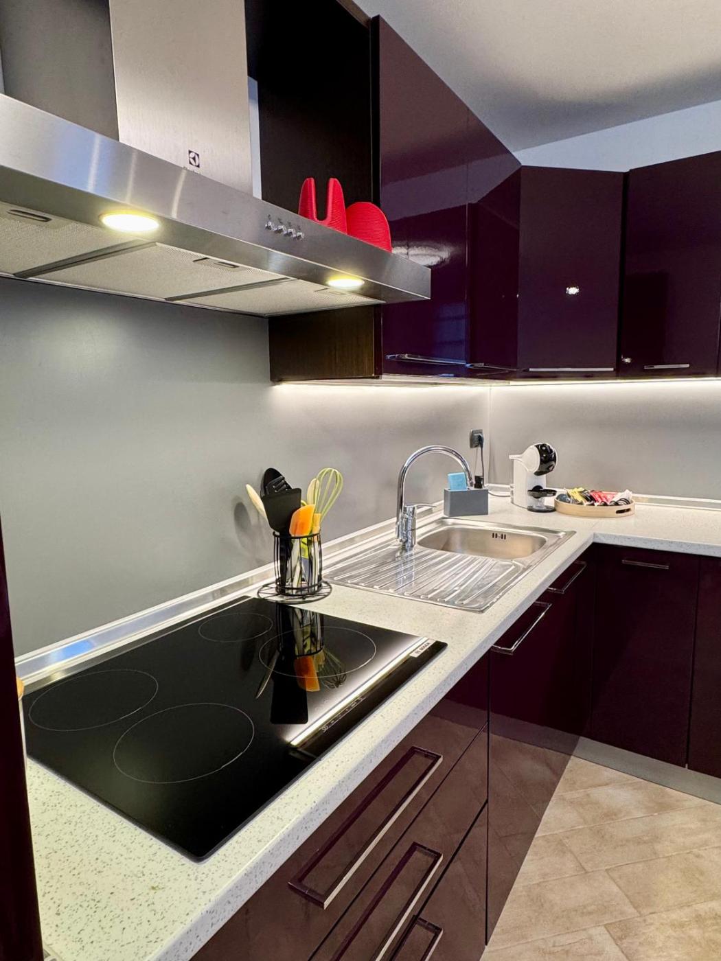 The apartment is equipped with 1 bedroom, 1 bathroom, bed linen, towels, a flat-screen TV, a fully equipped kitchen, and a balcony with mountain views. For added privacy, the accommodation has a private entrance and soundproofing.