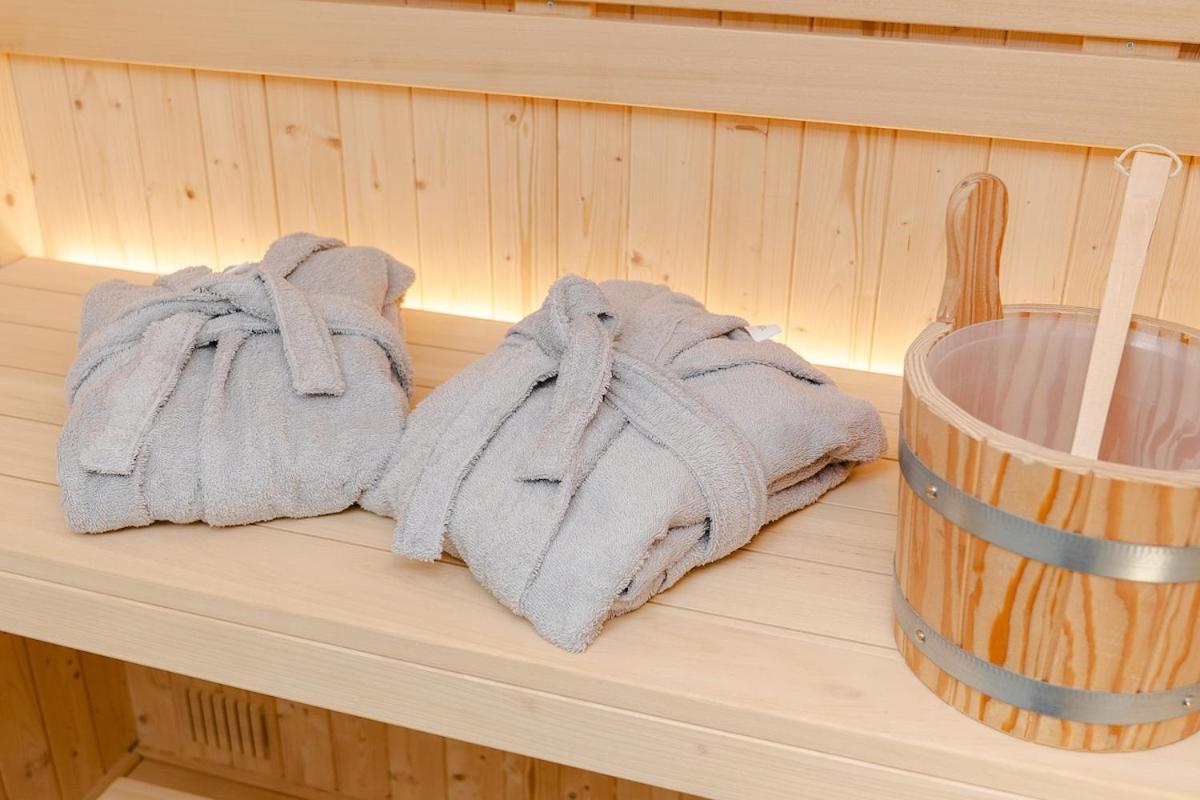 One-Bedroom Apartment. This apartment features a sauna. Boasting a private entrance, this air-conditioned apartment features a kitchen, 1 bedroom and 1 bathroom with a bath and a shower. Guests can make meals in the kitchen that has a stovetop, a refrigerator, kitchenware and a toaster. This apartment has a tea and coffee maker, flat-screen TV with streaming services, a quiet street view, as well as winechampagne for guests. The unit has 2 beds.