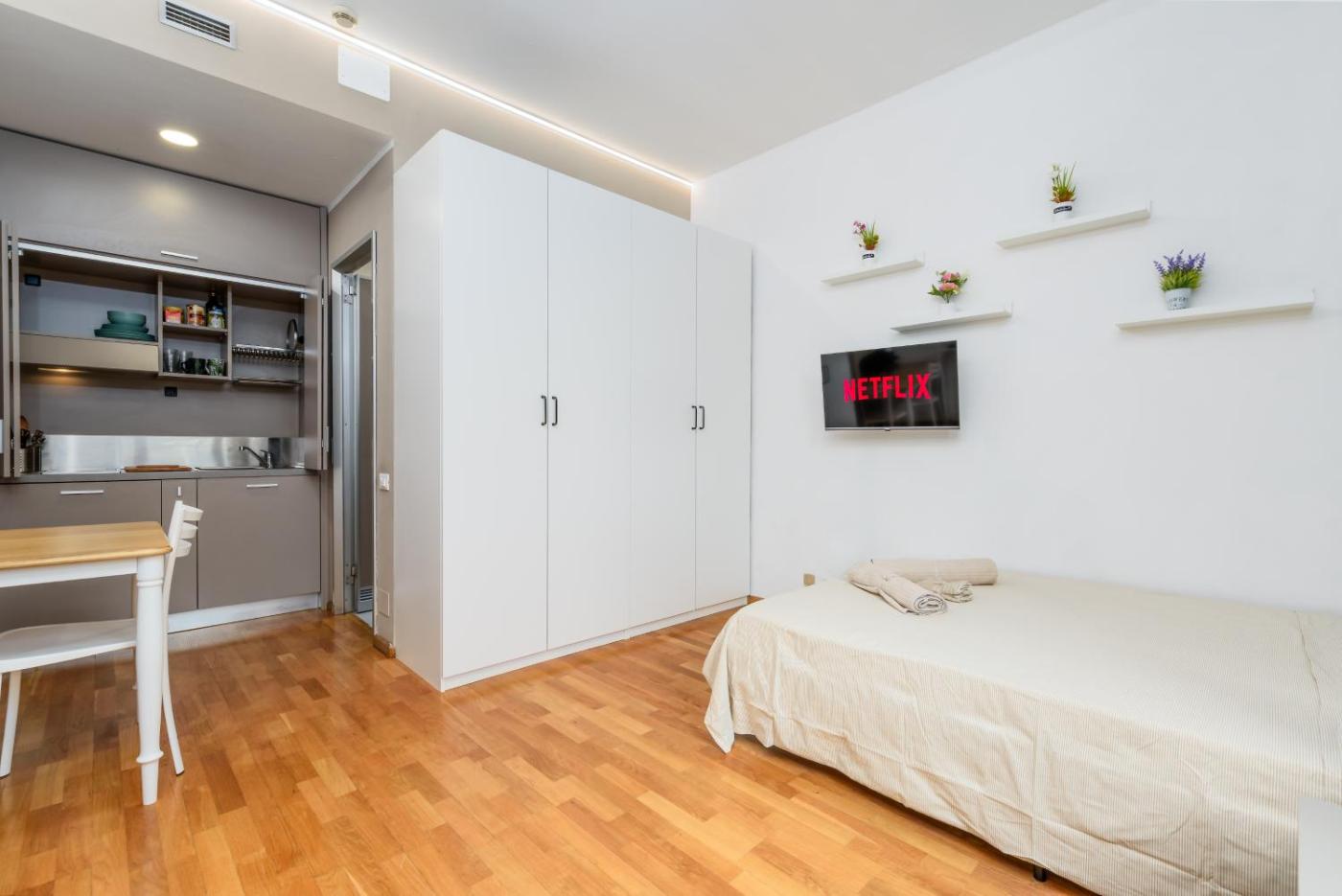 One-Bedroom Apartment. The air-conditioned apartment features 1 bedroom, 1 bathroom and a kitchen. The apartments kitchen is available for cooking and storing food. This apartment has a washing machine, heating and a flat-screen TV. The unit offers 2 beds.