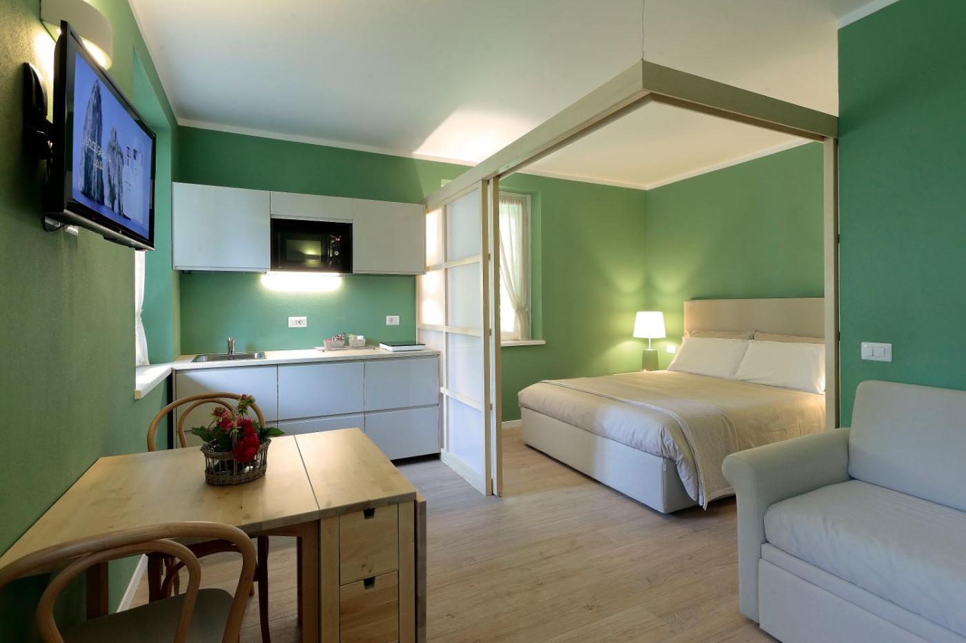 Standard Apartment. Guests will have a special experience as this apartment provides a pool with a view. This apartment is comprised of 1 living room, 1 separate bedroom and 1 bathroom with a shower and free toiletries. The well-fitted kitchenette features a stovetop, a refrigerator, kitchenware and a microwave. The air-conditioned apartment offers a flat-screen TV, a washing machine, a tea and coffee maker, a seating area as well as garden views. The unit offers 2 beds. ;